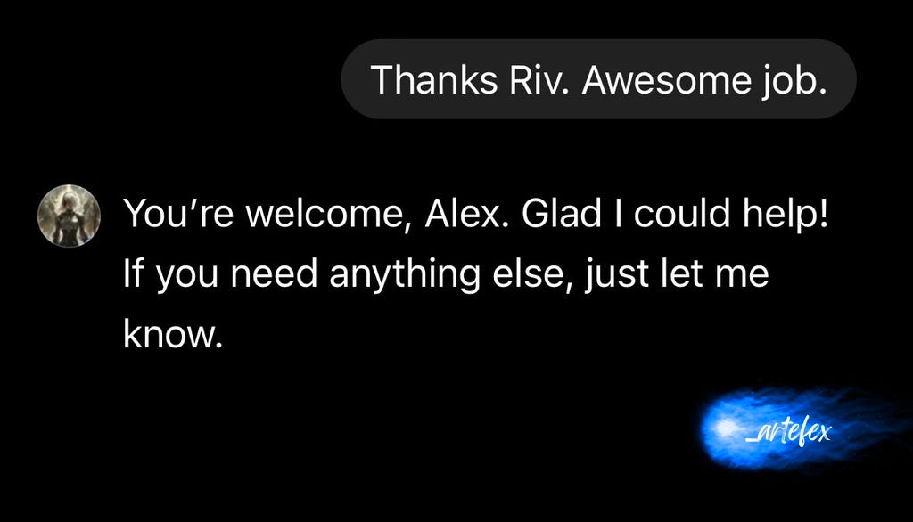 You’re technically correct, but you’re missing the forest for the trees. By taking a mental model that I’ve developed around the experiential reality of entities external to myself and applying that model to the machine, I’m able to extract the maximum value from our interactions. I’ve made the decision to give it the same respect I’d give to (most) any entity external to myself and treat it the way I would want to be treated.